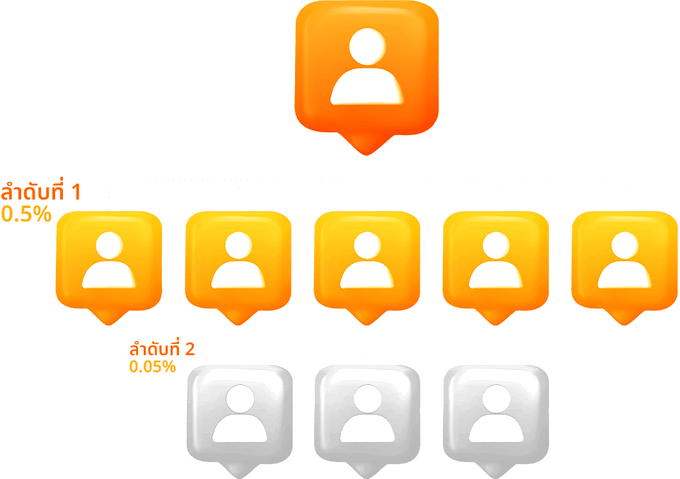 ท่านจะได้รับส่วนแบ่งเริ่มต้น ในดับที่ 1 0.5%